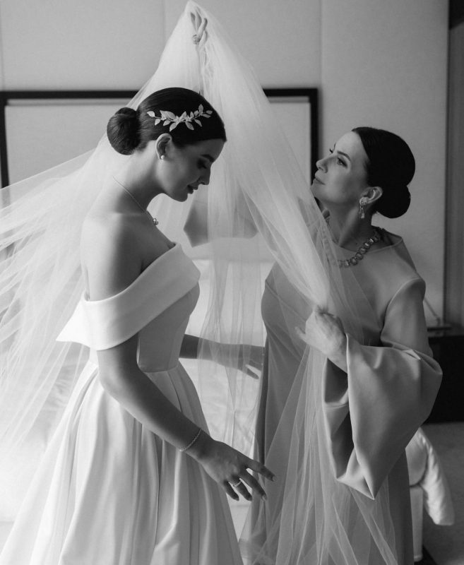 Свадебными снимками поделилась и мать невесты - Екатерина Стриженова. Она опубликовала кадр, где надевает дочери белоснежную фату и отправляет её в семейную жизнь.