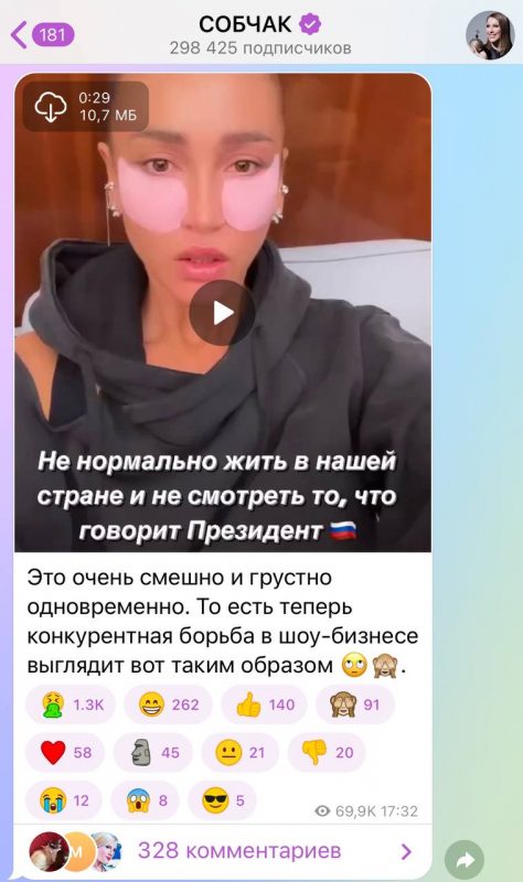 Напомним, что Ольга в своем обращении утверждала, что нельзя взрослому и осознанному человеку, живущему в своей стране, не слушать обращение Президента. К тому же, кто обладает большой аудиторией и является для них лидером мнений.