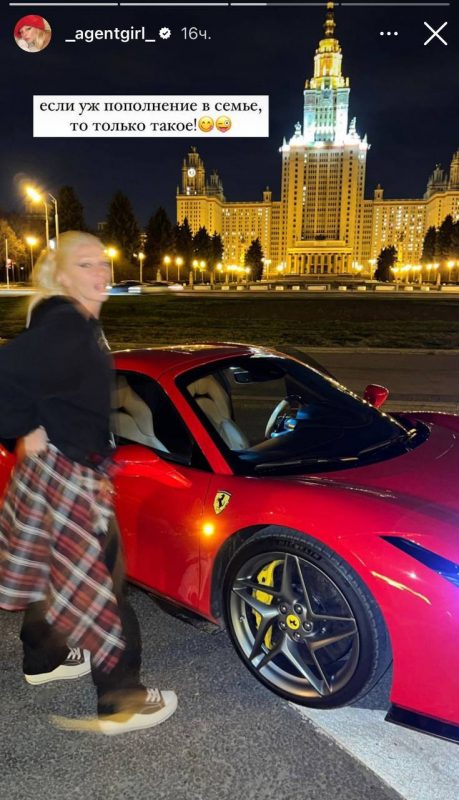 Тогда телеведущая так и не сообщила, приобрела она данный автомобиль или нет. Однако спустя всего несколько дней девушка похвасталась другой дорогой обновкой – ярко-красным Ferrari Tributo, которая, по ее словам, является идеальной машиной для летней Москвы.