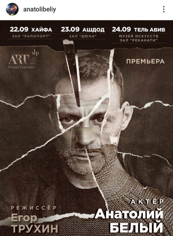 В прошлом году актер Анатолий Белый, снявшийся в более 130 российских фильмах и сериалах, уволился из МХТ имени Чехова и срочно уехал из России. Уроженец города Бацлав Винницкой области обосновался с Израиле, где с нуля пробует построить актерскую карьеру. Пока на съемки в кино не приглашают, Белый, по опыту других сбежавших из страны коллег, решил зарабатывать на жизнь с помощью гастролей по Европе.