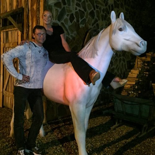Впрочем, приключений под бутафорской коровой Волочковой показалось мало, и она выложила еще одно фото. На нем она восседает на манекене лошади.