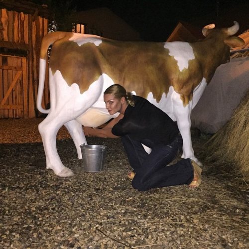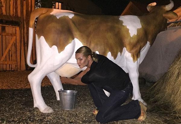 На своей странице в Instagram заслуженная артистка России порадовала поклонников колоритным снимком. На нем Настя сидит под коровой и держит ее за вымя в надежде добыть молоко. Волочкова сопроводила фото гордой лаконичной подписью: «Мастер-класс».