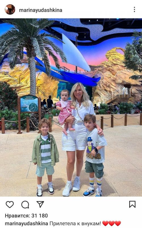 После смерти российского дизайнера Валентина Юдашкина прошло полтора месяца. Его супруга Марина, которая до самого конца была вместе с тяжелобольным мужем, больше не смогла оставаться в Москве, где все напоминает о любимом человеке. Как только прошло сорок дней, Юдашкина улетела из России к дочери и внукам. Наследница дизайнера вместе с супругом Петром Максаковым долгое время жили в Гонконге, а в 2022 переехали в Дубай, где открыли фирменные магазины. На днях вдова Юдашкина опубликовала новое фото с внуками: 7-летним Анатолием, 5-летний Аркадием и маленькой Агатой-Ариеллой. Бабушка с детьми отправилась гулять в местный зоопарк.
