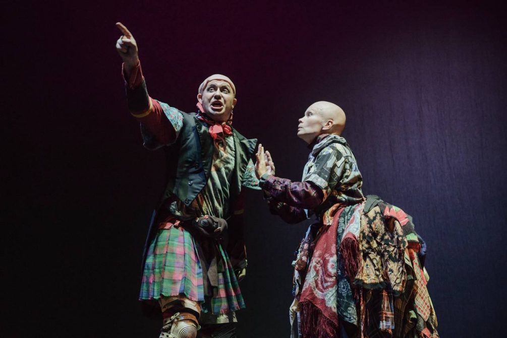 В центре сюжета – любовная история в декорациях постапокалиписа, и каждая из вершин «треугольника» впечатляет по-своему. Гротескный образ Друга (Леонид Пузиков) будто срисован с экранных зомби шоу-бизнеса, это примитивное существо «со стёклами на глазах», мешающими ему увидеть что-либо дальше банки с едой. Поэтичный дуэт Зверя (Евгений Кениг) и Дочери (Наталья Гришагина), своеобразных Ромео и Джульетты, сыгран артистами совершенно в другом эмоциональном регистре. Их связывает целая гамма переживаний, взглядов, прикосновений; их утончённый психологизм резко контрастен фарсовой манере антигероя. Глядя на них, вспоминаешь то одно, то другое стихотворение – но все они о хрупкости счастья. Своим спектаклем Вячеслав Долгачёв утверждает необходимость избавляться от страха и нетерпимости, осознанно смотреть в лицо настоящему – хотя бы ради будущего, которое туманно. Ведь, в сущности, все мы одно – и лысые, и лохматые; но можно, называясь человеком, ограничиться «жратвой и бабой», а можно – будучи «зверем» -- учиться играть на дудочке, читать книги и любить друг друга.