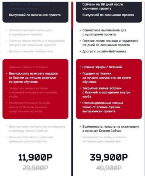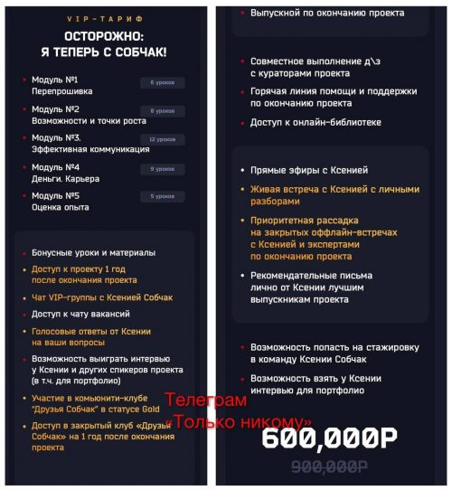 При этом последний, самый дорогой тариф, будет доступен не всем — кураторы отберут только 10 желающих. Он, в отличие от остальных, будет подразумевать голосовые ответы от самой Собчак, доступ в закрытые VIP-группы, а также возможность попасть на стажировку в команду Ксении и взять у неё интервью.