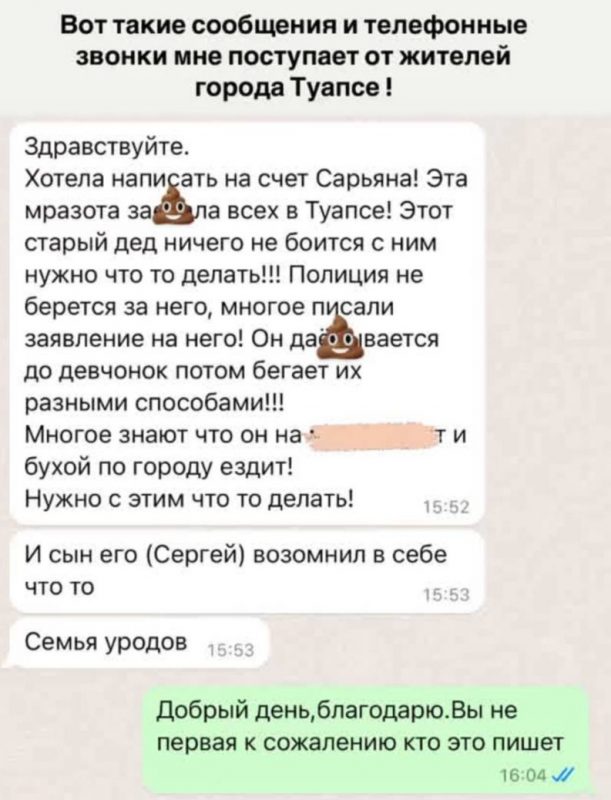 «Всю ночь это существо не давало нам спать, выламывал нам дверь, испугал моих детей, караулил нас возле подъезда, на днях по его команде фас его сын спустил мне и моей няне колёса на машине! Сегодня он кидался на меня и мою няню. Спасибо неравнодушным ребятам, которые заступились за нас», ‒ рассказала Ефременковова.