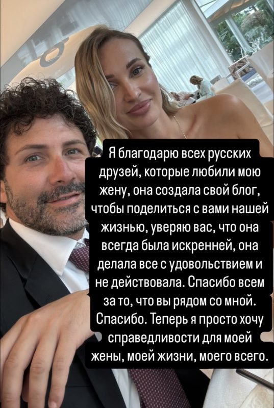Итальянский предприниматель Джузеппе Ночерино, супруг блогерши Юлии Бурцевой, тяжело переживает трагедию, произошедшую в Москве. Днем 4 января Юлия обратилась в частную клинику Elmas Clinic, расположенную в Токмаковом переулке. После проведенного хирургического вмешательства у пациентки развился анафилактический шок, спасти ее не удалось. Смерть жены стала для Ночерино неожиданным и сокрушительным ударом — он признается, что не мог представить, что, на первый взгляд, рутинная косметологическая процедура может обернуться такими последствиями.