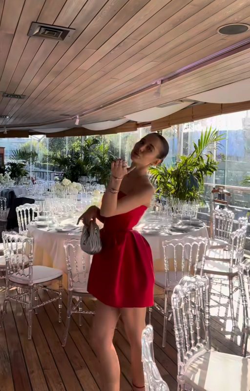 Позже выпускники отправились в ресторан, где уже классический наряд девушка сменила на утонченное красное платье. В нем Аврора сняла видео под праздничный салют и опубликовала под песню своего звёздного избранника «Самый лучший день!».