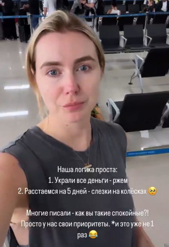 «Нас обворовали в последний день. Классика. Вместо того чтобы купаться, мы весь день разбираемся с полицией… Мы все уже написали. У нас ведь все деньги украли, забрали все», ‒ пожаловалась жена сына Виктора Дробыша в своих соцсетях.