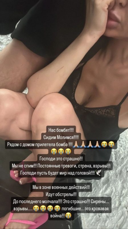«Рядом с домом прилетела бомба! Господи, это страшно! Почти не спим. Постоянные тревоги, сирены, взрывы. Господи, пусть будет мир над головой! Мы не унываем и прячемся. Пусть все будет хорошо», - написала блондинка.