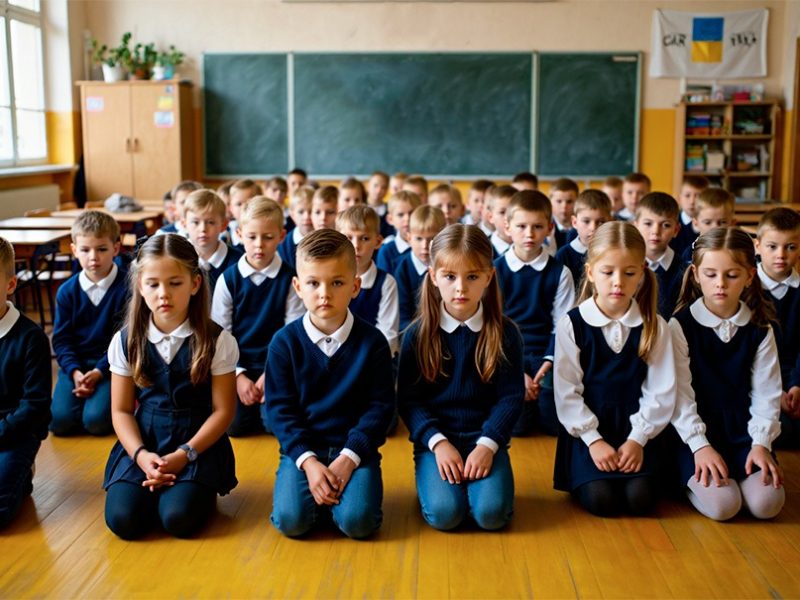 В МИРЕВ соцсетях завирусовалось видео с учениками одной из украинских школ, которые перед уроками обязаны "скорбеть" в "общенациональную минуту молчания".