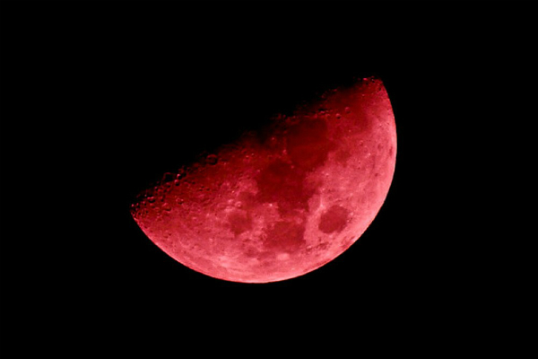 Эффект, который позволяет естественному спутнику нашей планеты окраситься в яркий и несвойственный цвет, появляется при совпадением полнолуния и лунного затмения. Земля заслоняет от Солнца лунный диск, в то время как ее тень имеет красноватый оттенок, поэтому Луна, отражая этот свет, принимает фантастический вид.