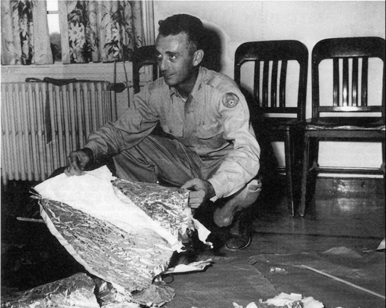 По его словам, тот исследовал найденные в поле осколки и пришел к выводу, что они созданы не человеческими руками. Образцы были доставлены на военную базу в Розуэлле, где военные специалисты попытались выяснить, откуда они взялись и из какого материала сделаны.
