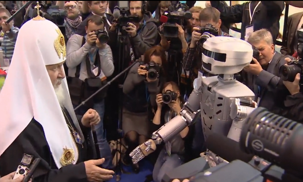 Глава Русской православной церкви по достоинству оценил способности робота Федора, но отказался пожать ему руку.