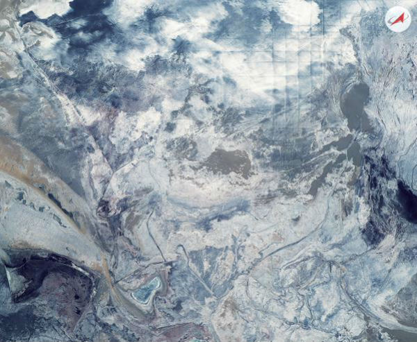 Прямо из космоса была зафиксирована бывшая акватория Аральского моря, Узбекистан. Съемка также проводилась с помощью космического аппарата «Ресурс-П».