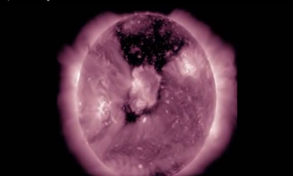 Видео с самой большой корональной дырой на Солнце появилось на сайте Национального управления по воздухоплаванию и исследованию космических пространств.