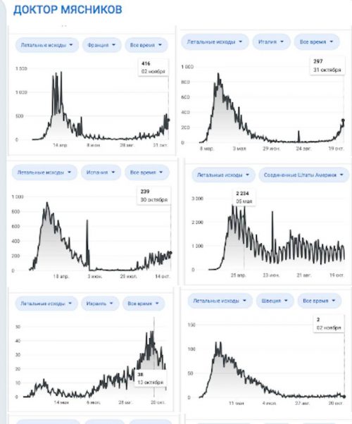 В Израиле смертность хоть и возросла, но в абсолютных цифрах не очень и велика, подчеркивает доктор. В Швеции кривая смертности скатилась вниз до 2-3 погибших в день. Белоруссия показывает «плато» в 6 погибших ежедневно. А вот в России, наоборот, отмечен рост по сравнению с первой «волной», вынужден был признать Мясников.