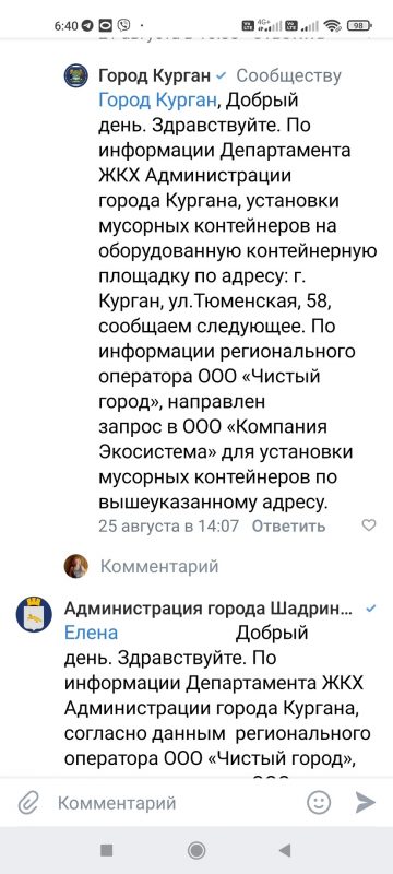 «Администрация города убрала с улицы Гризодубовой мусорные баки, хаотично стоявшие, и поставила новенькую контейнерную площадку на улице Тюменской, но не поставила в нее баки.