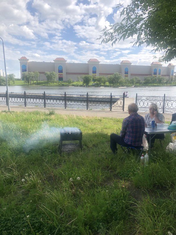 В редакцию она предоставила множественные фото и видео материалы. На них видно, что беседки заняты до отказа. Все, кто не поместился, расположились на зеленой зоне вдоль реки. В основном это иностранцы. И стоит отметить, что напротив расположился парк «Остров мечты».