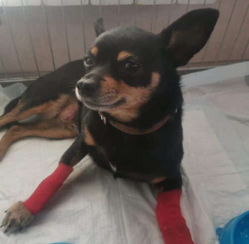 Ветеринар забирала полуживое животное. Шансов у той-терьера почти не было. Собака была вся синяя, кровь текла, был ушиб грудной клетки, гематомы, сотрясение мозга, сломаны были все четыре лапы. Жанна Владимировна реанимировала ее в свой клинике всю ночь. А с утра начала думать, что делать дальше. Поначалу хотела отправить ее в стационар в крупный город. Стала звонить, но везде отказывали: мол, это ж «мешок с костями», проще усыпить. Зарипова оставила Джульетту у себя, провела четыре операции, вернула животное к жизни. Жанна Владимировна выхаживала собаку два месяца. Понемногу день за днем Джульетта заново училась сидеть, начинала ходить, состояние ее улучшалось.