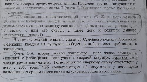 Ни этот факт, ни показания десяти свидетелей (в том числе соседей) Эдуарда, которые заявили о том, что он постоянно проживал в спорной квартире, ни предоставленные документы не смогли перевесить чашу весов Фемиды. Суд вынес решение в пользу бывшей супруги.