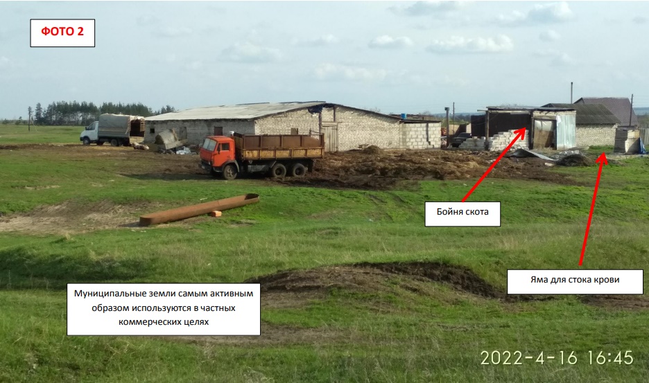 На территории осуществляется хранение и перевалка навоза, сливается кровь животных после еженедельного забоя и здесь же находятся туши и сжигаются отходы (кишки, хвосты, копыта). Обращения в инстанции результатов не дают.