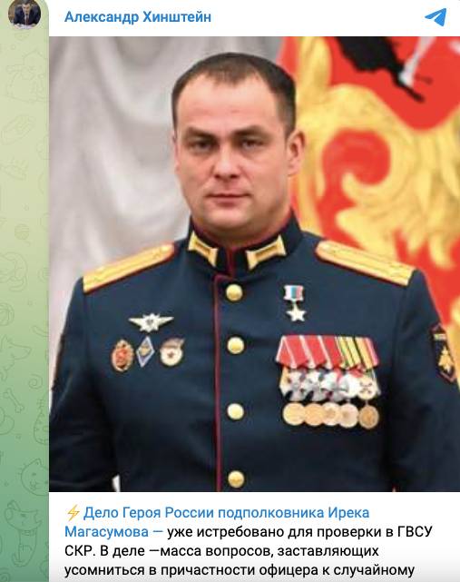 С августа Герой России находится в СИЗО. Дело подполковника взял под личный контроль депутат Госдумы Александр Хинштейн. Парламентарий считает, что в деле много нестыковок, потому он затребовал его для проверки. Кроме того, он обратил внимание на то, что за голову Ирека Магасумова ВСУ назначили награду в $75 тысяч и «в сегодняшних условиях держать за решеткой замкомбрига, которого ждут на фронте, — верх безрассудства».