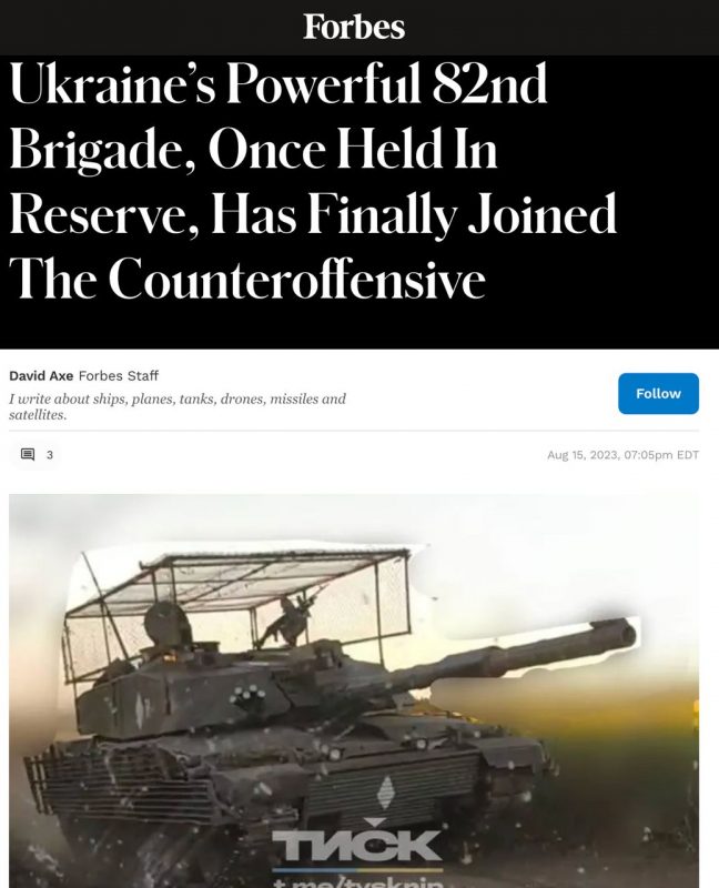 Действительно, о переброске 82-й бригады ВСУ на участок в районе Работино изначально сообщили американский Forbes и немецкое издание Bild.