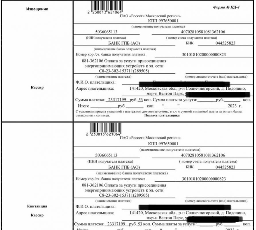 Заявку на подключение света одобрили, но только от такой «поддержки» радость пропала и руки опустились. За подключение семье пришел счет от ПАО «Россети» в 23 317 199 рублей 53 копейки.