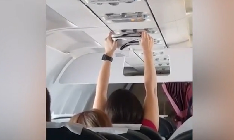 Пассажирка рейса авиакомпании «Уральские авиалинии» (рейс Анталья - Москва) в течение 20 минут сушила трусы под кондиционером в салоне самолёта. Ролик снял сидевший неподалёку пассажир. Замечаний женщине без комплексов никто не делал.