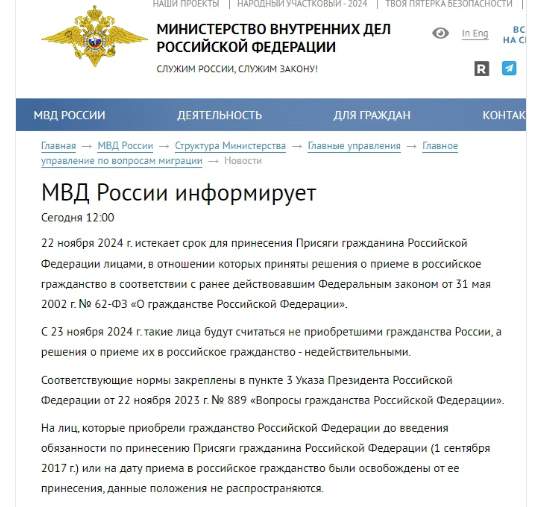 Как правильно заметила член Совета по правам человека Марина Ахмедова, все у новых граждан РФ было хорошо до 2022 года, а вот потом их явно начал смущать один пункт присяги, а именно: «защищать свободу и независимость Российской Федерации». Тогда мигранты засобирались на историческую родину, чтобы не приносить присягу новой.