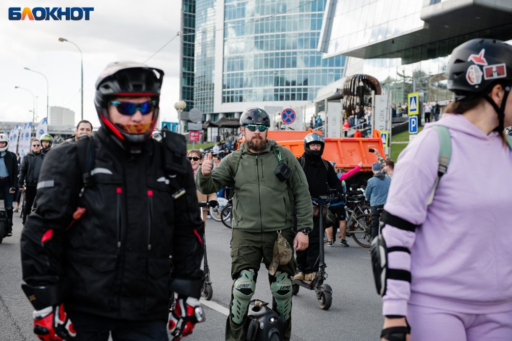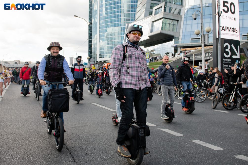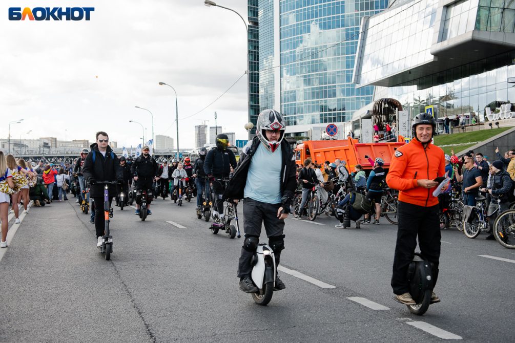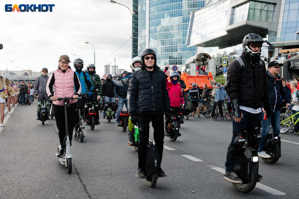 Основная колонна участников стартовала ровно через час, а на 15 минут раньше выехали посетители на электротранспорте, для которых была подготовлена отдельная полоса. К ним присоединились курьеры службы доставки «Яндекс» и «Delivery Club».