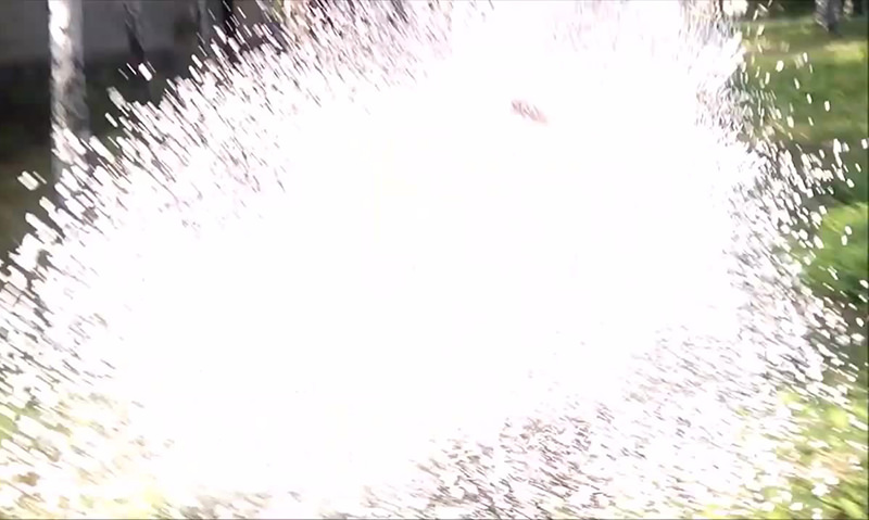 Баллон взрывается и обдает человека с ног до головы пеной, которую очень трудно удалить. К тому же, если пена попадет в глаза можно лишиться зрения. Однако это не останавливает авторов видео - они находят невероятно смешным залепленного пеной человека, который оказался ещё тупее их.