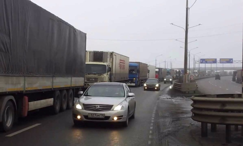 Так, около шестидесяти большегрузных автомобилей выстроились в Московской области на обочине 31-го километра трассы «Дон».