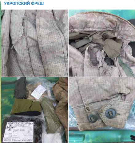 Телеграм-канал «Укропский фреш» разместил фото одного из таких комплектов одежды, которую получил солдат ВСУ. Как сообщает издание, бывшему владельцу он уже не понадобится, поскольку он погиб в Киевской области.