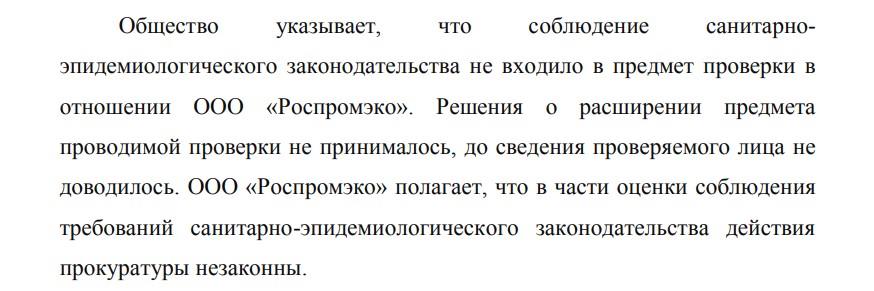 Прокуратура потребовала не только устранить нарушения, но и привлечь к ответственности должностных лиц компании, которые все это допустили. Но в ответ «Роспромэко» предпочло пуститься в судебные тяжбы, пытаясь доказать отсутствие у прокуратуры «законных оснований для проведения проверки, нарушения порядка ее проведения, иных процессуальных нарушений». Т.е., по умолчанию, сами нарушения компания признала. Но, мол, вы не объяснили нам заранее суть проверки, и, значит, узнали о нарушениях нечестно!