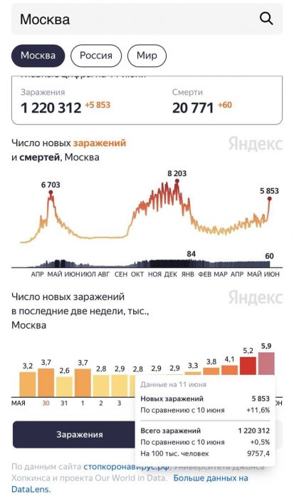 5 853 новое заражение