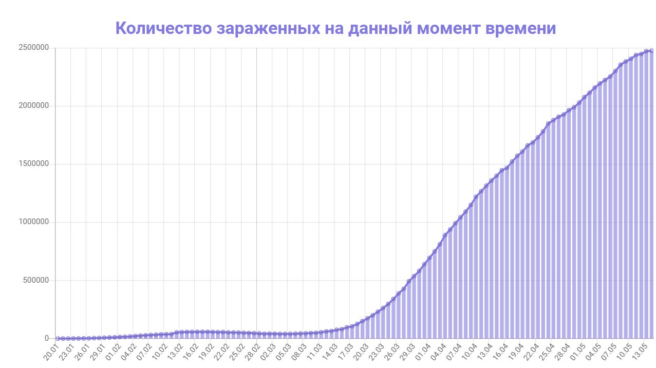 На 24 660 человек выросло число зараженных за вычетом «выбывших» (плюс 0,99%)