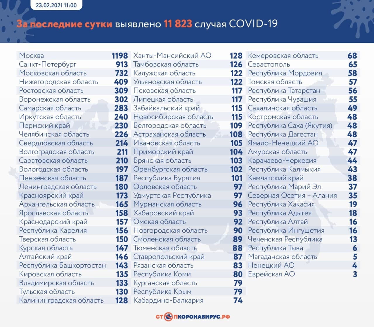 11 823 новых заражения за сутки