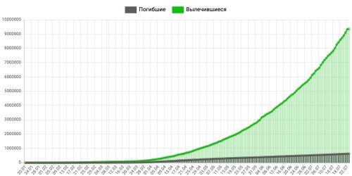 На 21 580 увеличилось число зараженных за вычетом «выбывших» (плюс 1,06%)