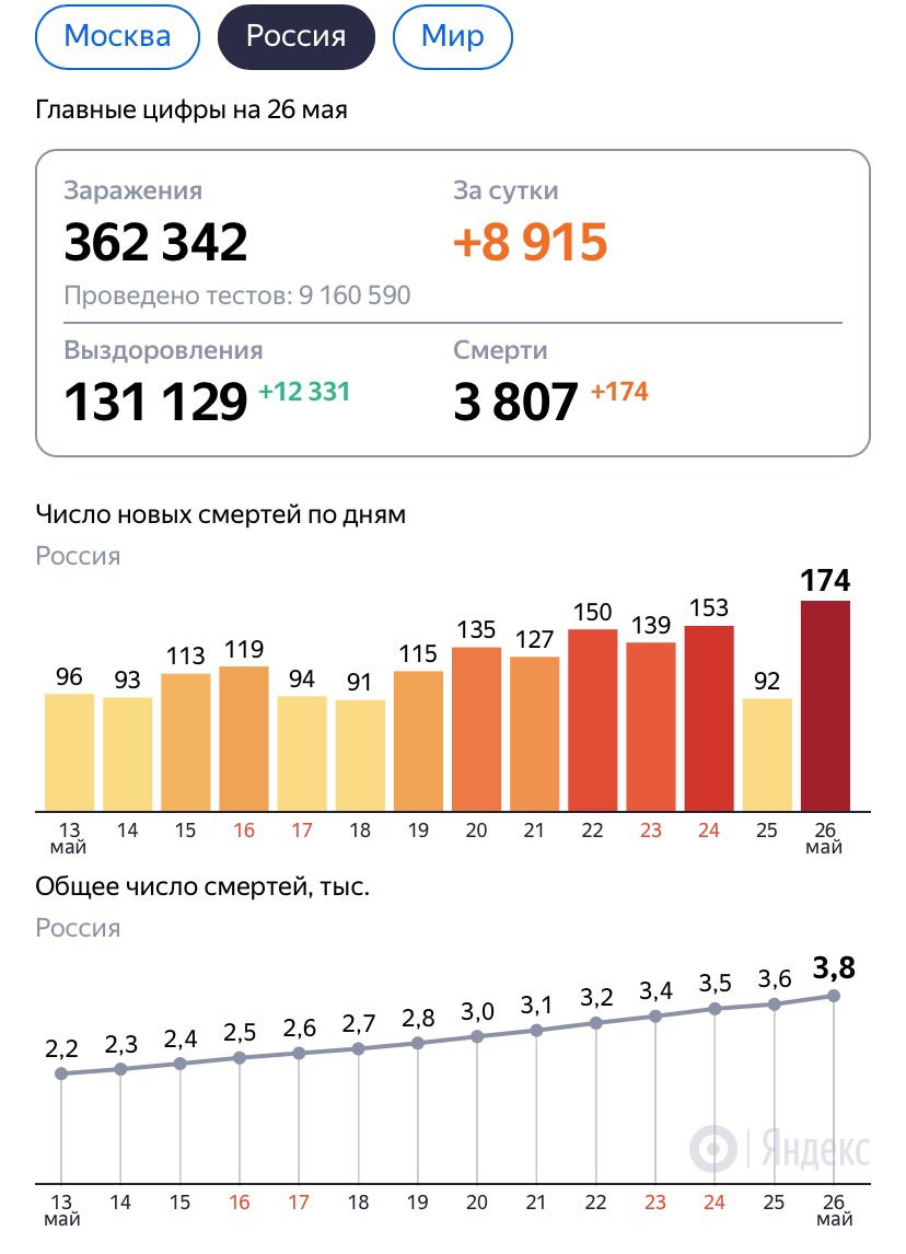 В России установлен новый рекорд по числу погибших за сутки — 174 человека.