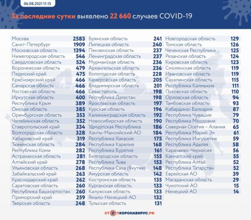 22 660 новых заражений за сутки