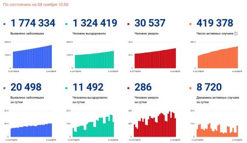 На 8720 человека выросло число зараженных за вычетом «выбывших» (плюс 2,07%)