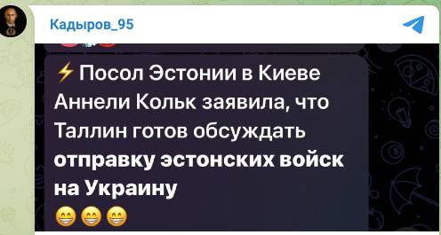 Ранее эстонский дипломат Аннели Кольк прямо заявила киевскому режиму, что ее страна готова обсуждать отправку армии.