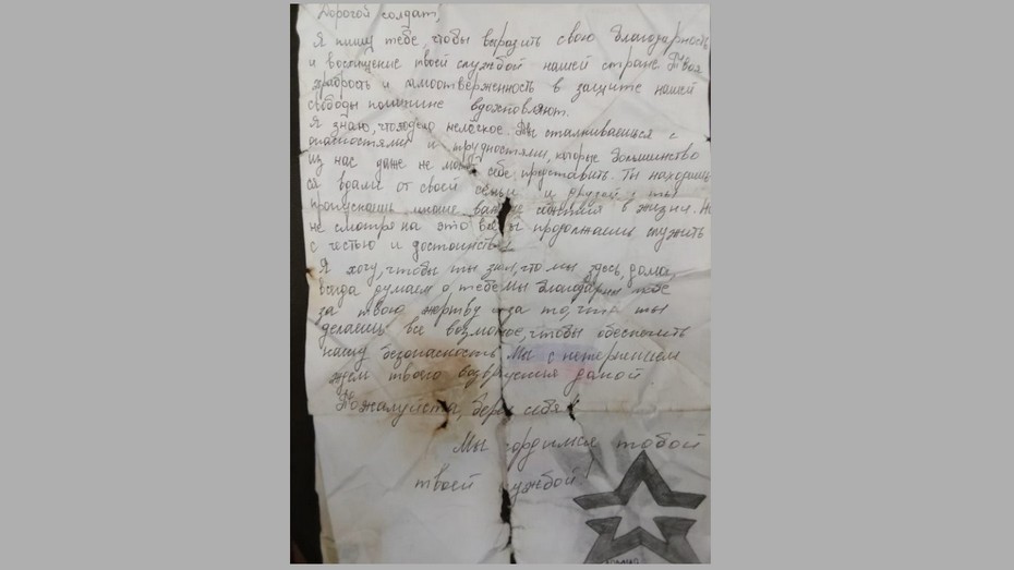 Письма, которые спасли бойцу жизнь, написали ученики восьмого класса Терновской школы №1 Анна Плотникова и Дмитрий Голиков. Так ребята решили поддержать бойцов в рамках патриотического урока.