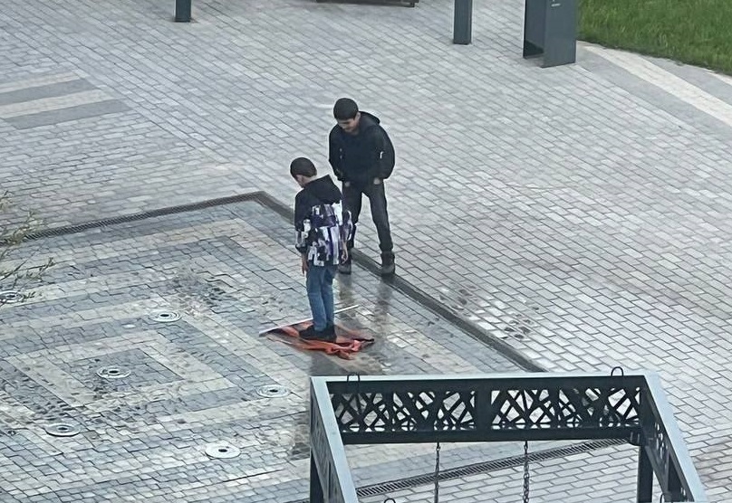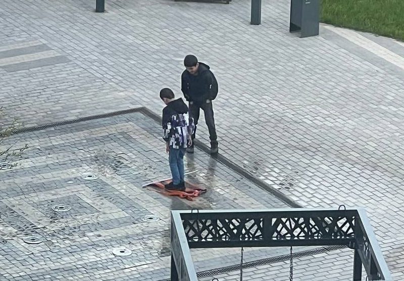 Всё началось в Обнинске, где двое школьников из семей мигрантов, недавно ставших гражданами РФ, сорвали флаг с изображением Георгиевской ленты, положили его на фонтан и топтались по нему. Местные жители возмутились до предела, а Telegram-каналы тут же разнесли видео с «извинениями» родителей и самих мальчишек.