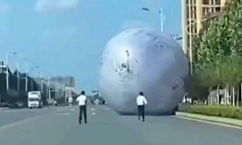 Огромная надувная фигура Луны размером практически с двухэтажный дом прокатилась по улицам одного из городов в китайской провинции Хэнань, распугивая прохожих. Луна была установлена как украшение на праздник Середины осени, однако сильный ветер сорвал фигуру и покатил ее по городским улицам.