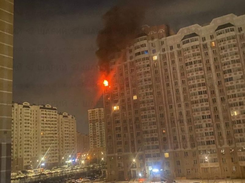 В ходе атаки обломки украинского БПЛА влетели в высотный жилой дом, после этого в здании начался сильный пожар. По информации СМИ, обломки прилетели в жилую многоэтажку в одном из районов города, в квартиру на 14 этаже.