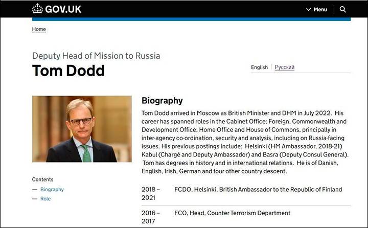 Как утверждает издание «Царьград», российские миллиардеры являются английскими шпионами. К такому выводу здесь пришли из-за подозрительно тесных контактов Абрамовича и Прохорова с заместителем посла Великобритании в России (теперь уже бывшим) Томом Доддом. Отдел расследования «Царьграда» уточняет, что этот дипломат высокого ранга сбежал из России, как только запахло жареным - обвинением в шпионаже. Додд никогда не скрывал своих антироссийских взглядов и добросовестно проводил эту политику Лондона, в какой бы стране не находился. В частности, во время работы в посольстве Великобритании в Ираке, Афганистане, он чуть ли не в каждой аналитической записке указывал на необходимость расширения НАТО на Восток. Ярким примером может служить Финляндия. Заявку в членство альянса страна подала тогда, когда Додд возглавлял дипломатическую миссию Британии в Финляндии. Вряд ли это можно назвать совпадением. Издание утверждает, что Додд покрывал работу британской разведки М16, действующей под прикрытием посольства в Москве.