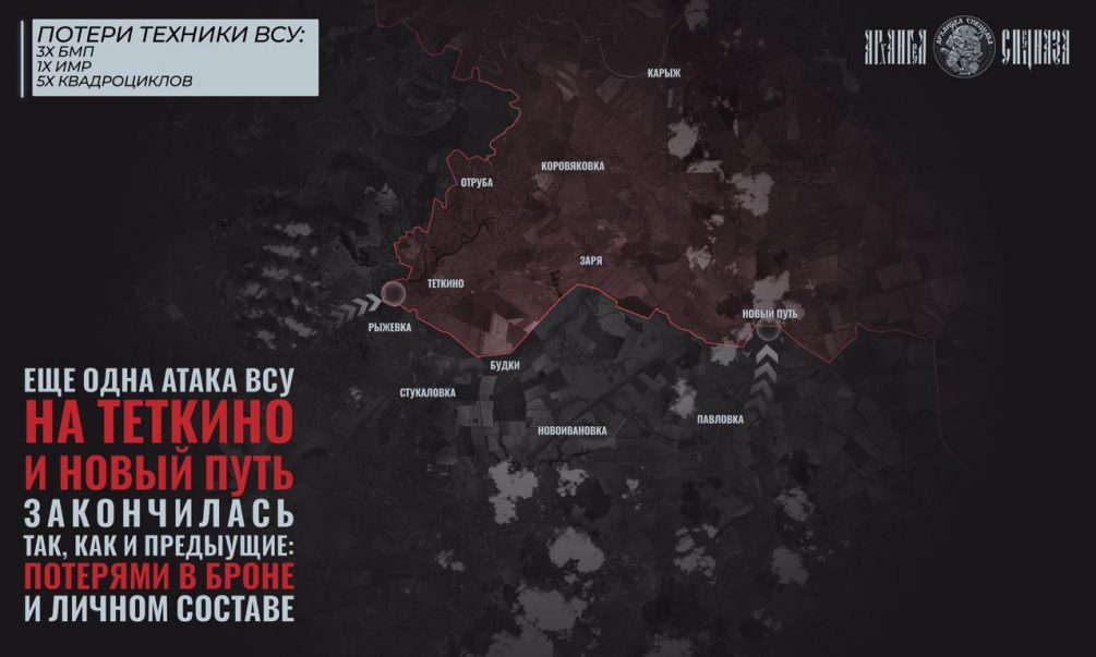 На Сумском направлении враг пытался пройти через рубеж Новый Путь — Искриковщина, но был остановлен с потерями. В регионе фиксировалась активность украинских инженерных машин и штурмовиков, которые были ликвидированы артиллерией и дронами.